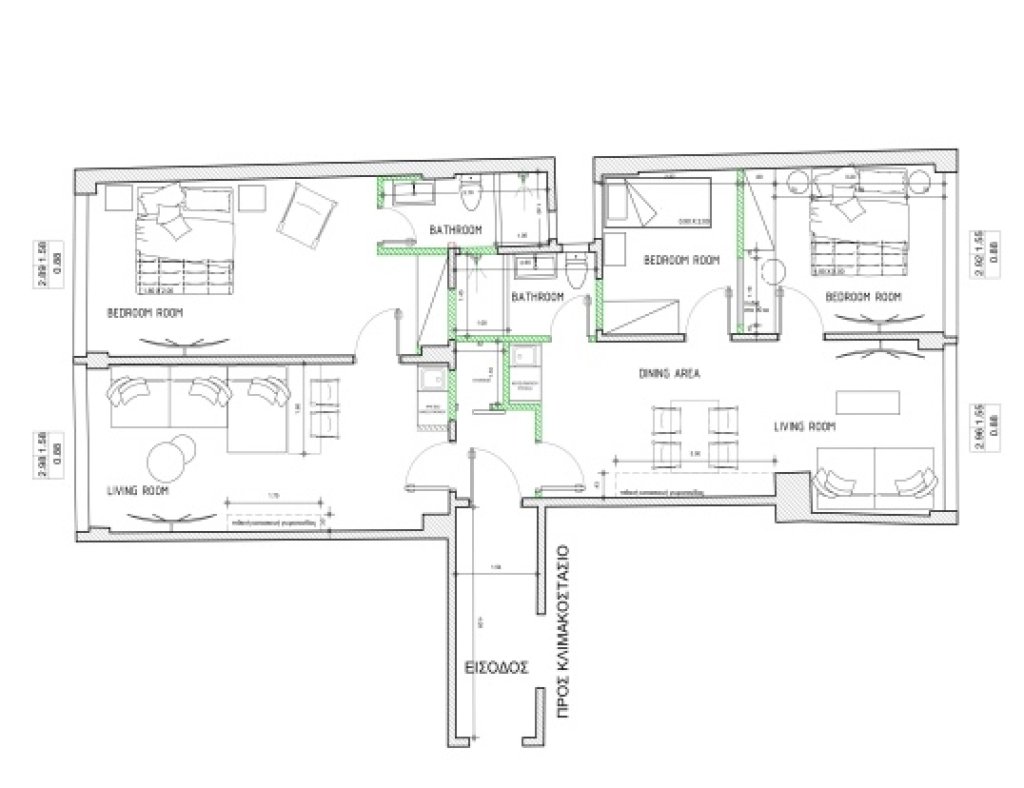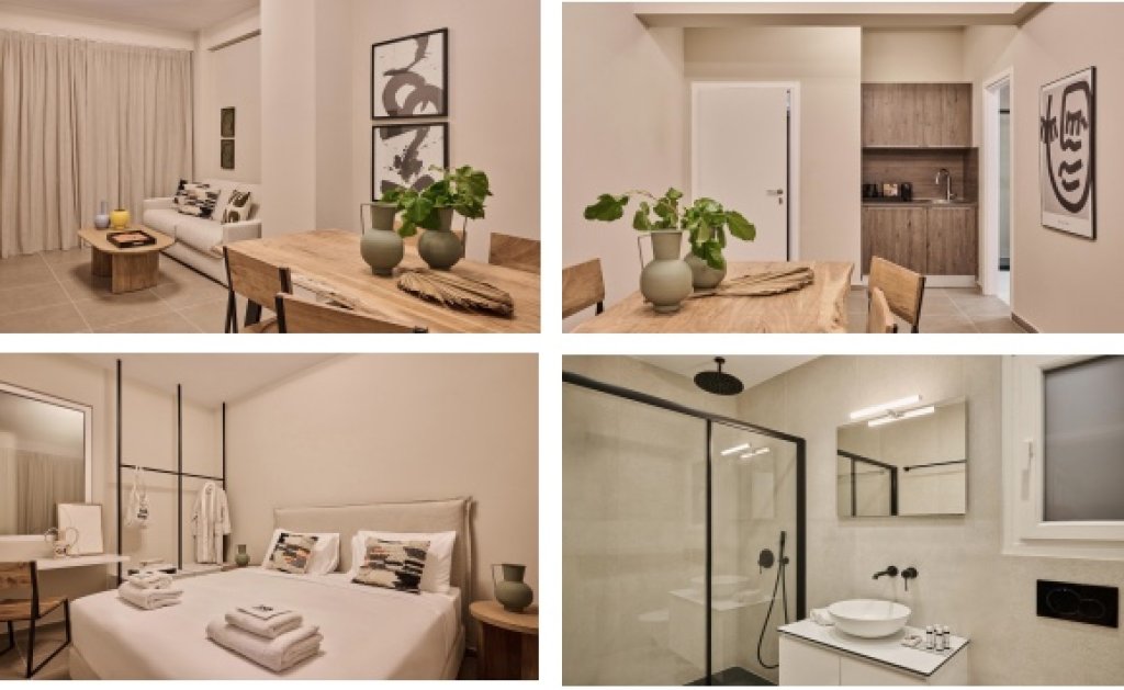 These two apartments are located on the 4th floor of a mixed-use building. They share a common entrance and foyer, allowing them to function either as two separate units or as one larger residence—ideal for two families. The front apartment includes a master bedroom, a living room with a sofa bed, a dining area, and a kitchenette, comfortably accommodating up to four guests. The second apartment features two bedrooms (one double and one single), a living room with a sofa bed, a bathroom, and a dining area with a kitchenette. Both apartments are spacious, bright, and are sold together as one unit. They are currently operated as short-stay rentals under a hospitality management company.